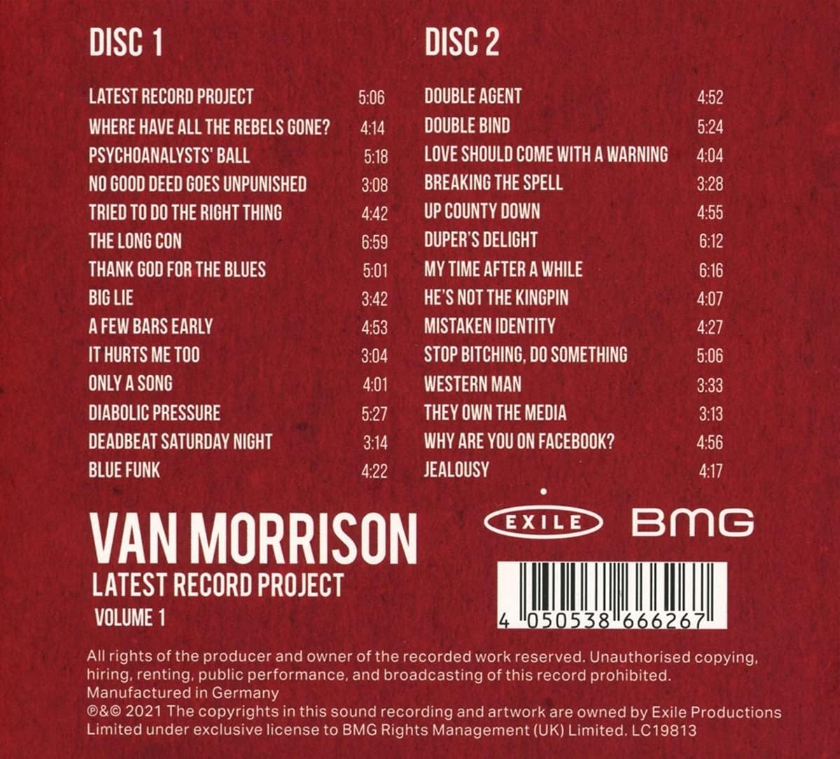 Latest Record Project Volume 1 is the 42nd studio album by Van Morrison, released on May 7, 2021 by BMG/Exile Production, in 2 CD 28 Tracks.
