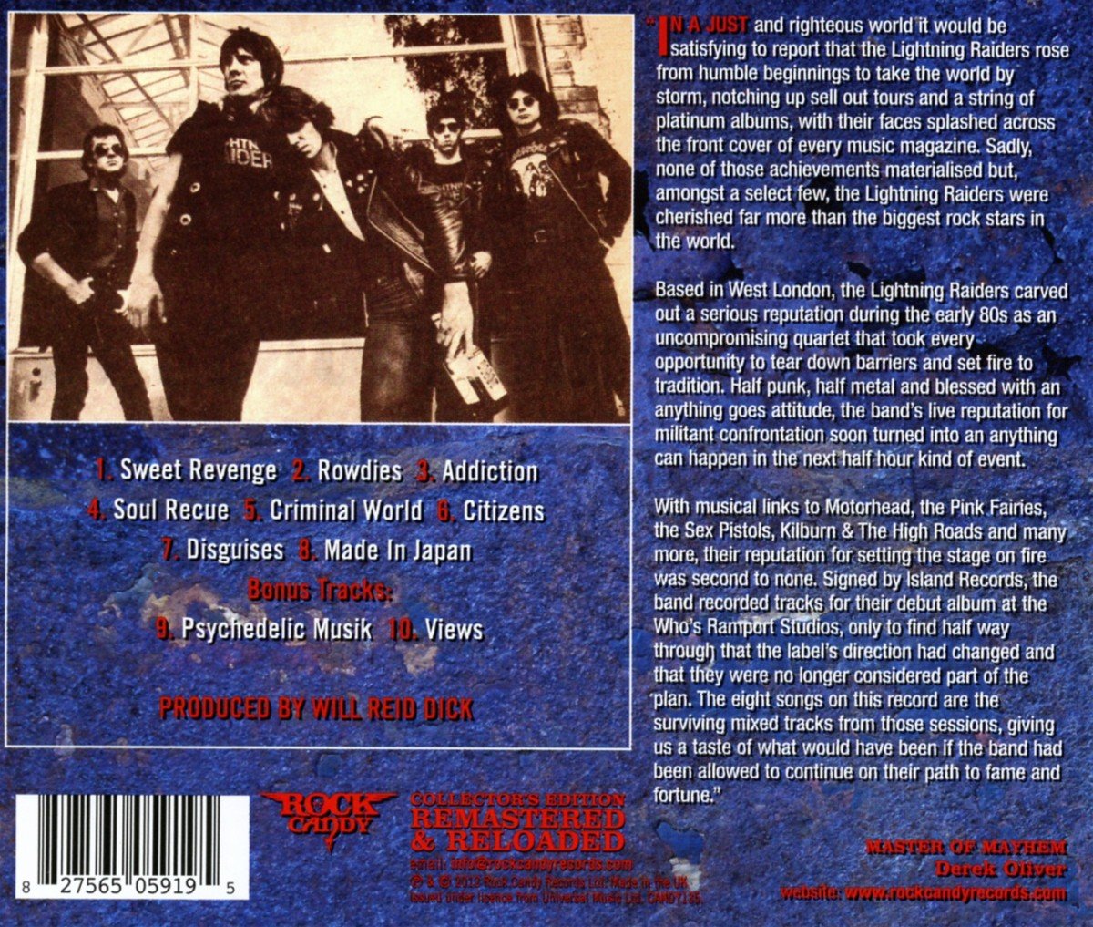 Sweet Revenge is the first time release for this lost classic album of Lightning Raider, and newly mastered 24 Bit Audio by Rock Candy Records, the band music mixed between The Stooges meets The MC5, includes member of The Pink Fairies and The Sex Pistols.