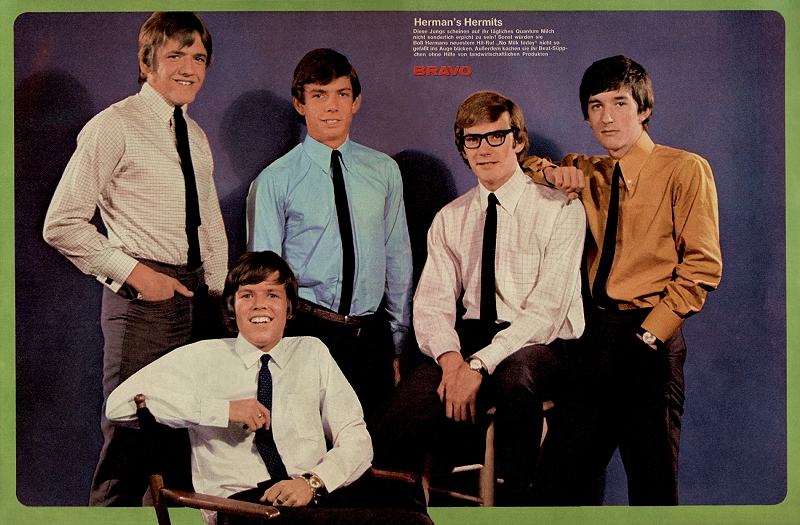 Herman's Hermits are an English Pop Band from Manchester, formed in 1962. Originally called Herman & The Hermits, consisted of Peter Noone (Vocals), Keith Hopwood (Guitar), Karl Green (Guitar), Alan Wrigley (Bass), and Steve Titterington (Drums), later replaced by Barry Whitwam (Drums), Derek Leckenby joined on Lead Guitar, and Karl Green played Bass to replace Alan Wrigley. The band had several hits "I'm Into Something Good" (written by Gerry Goffin and Carole King), which reached No. 1 in the UK Singles Chart, "Mrs. Brown, You've Got A Lovely Daughter", "I'm Henry The Eighth, I Am". Herman's Hermits had three Top 3 hits in the US in 1965, "Can't You Hear My Heartbeat" (US No. 2), "Silhouettes" (US No. 5), "Wonderful World" (US No. 4), "Just A Little Bit Better" (US No. 7), "Leaning On A Lamp Post" (US No. 9), "A Must To Avoid" (US No. 8), in 1965, "Listen People" (US No. 3), "Dandy" (US No. 5), "There's A Kind Of Hush" (US No. 4) in 1967 and many more!.