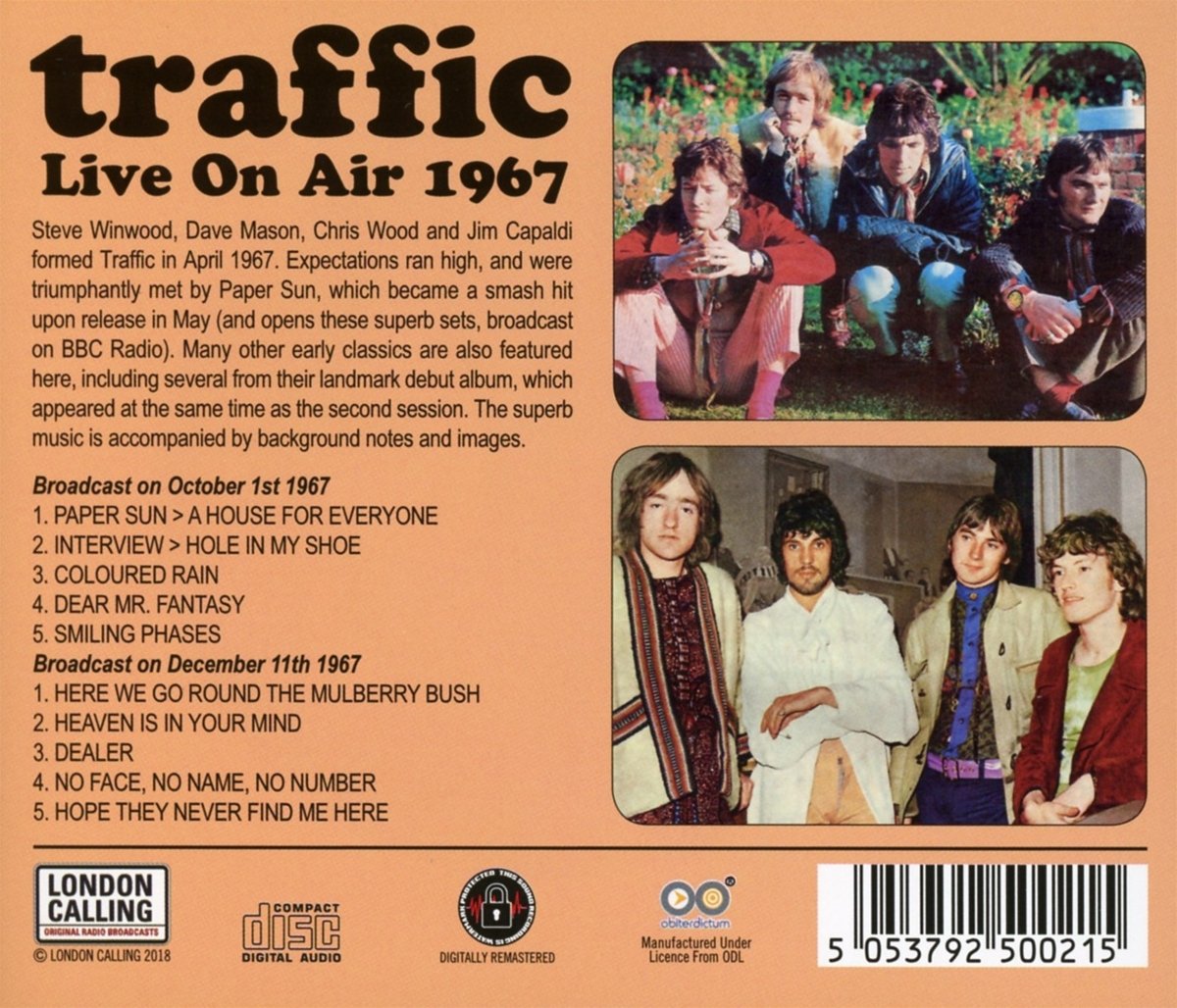 Live On Air 1967 is the live album by Traffic, released on January 19, 2018 by London Calling, recorded live on BBC Radio, in 1967.