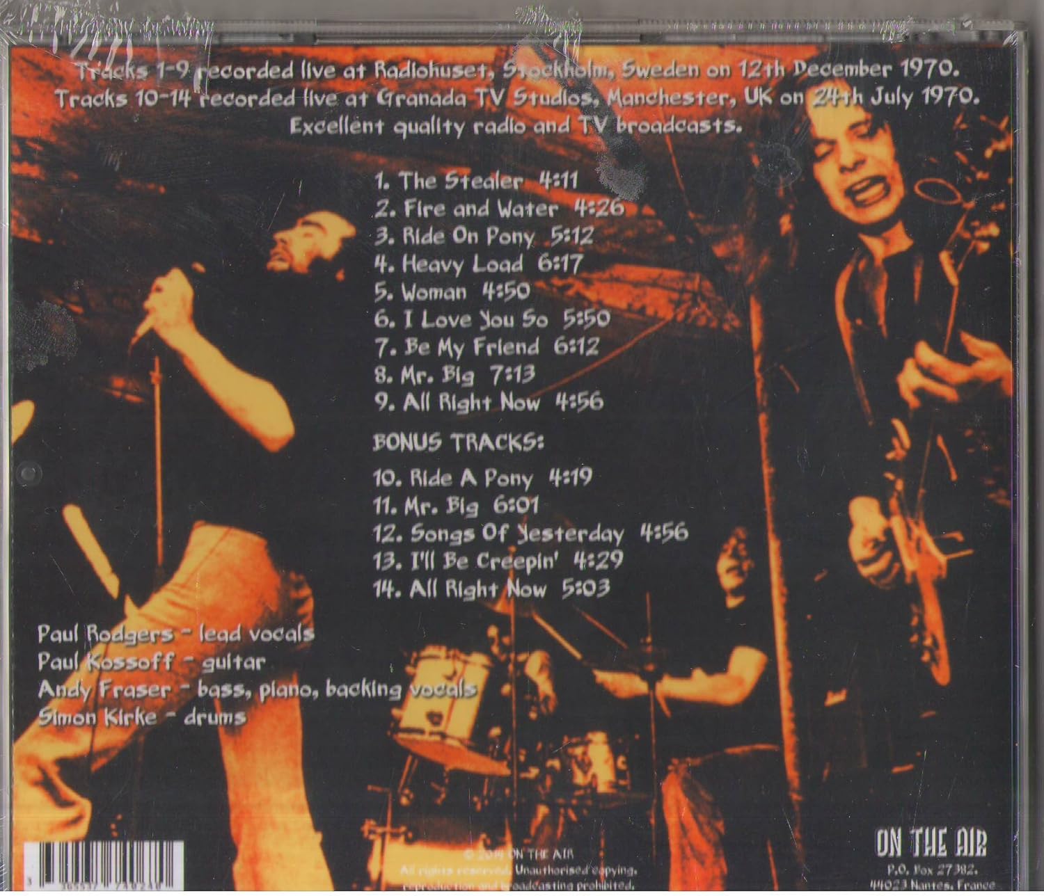 Live In Stockholm 1970 is a live album by Free, was released 2014 by On The Air, recorded live at Radiohuset, Stockholm, Sweden on December 12, 1970, with 5 Bonus Tracks, recorded live at Granada TV Studios, Manchester, UK on July 24, 1970.