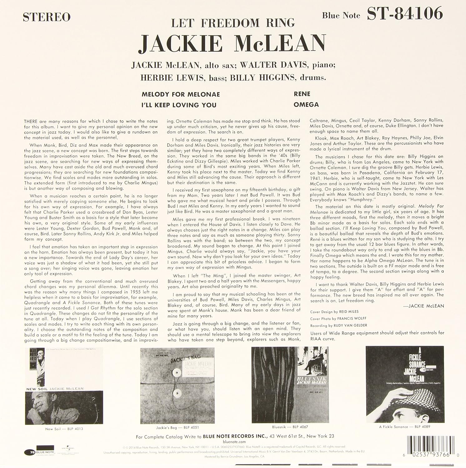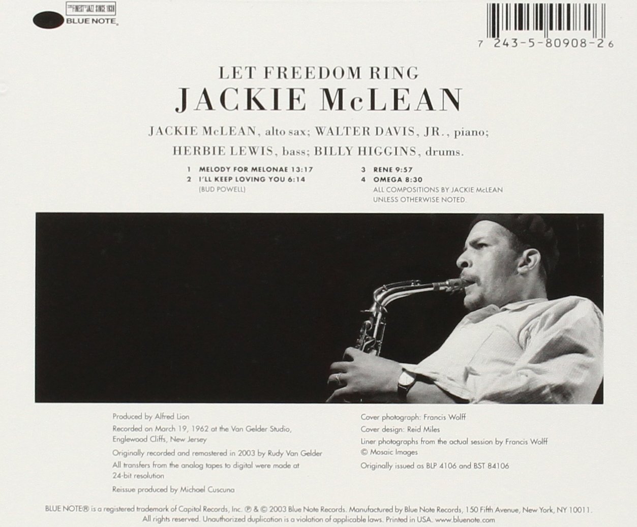Let Freedom Ring is an album by Jackie McLean, originally released on May, 1963 by Blue Note Records, remastered and reissued on January 31, 2020 by Culture Factory, featuring Walter Davis, Jr., Herbie Lewis and Billy Higgins.