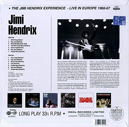Live In Europe 1966-1967 is a live album by The Jimi Hendrix Experience, released on December 6, 2019 by 1960s Records. For Music Music Lovers and Music Collectors.