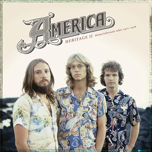 Heritage II: Demos/Alternate Takes 1871-1976 is the demos and alternate Takes by America, released on April 24. 2020 by Omnivore Records. All Tracks previously unissued from 1971-1976.