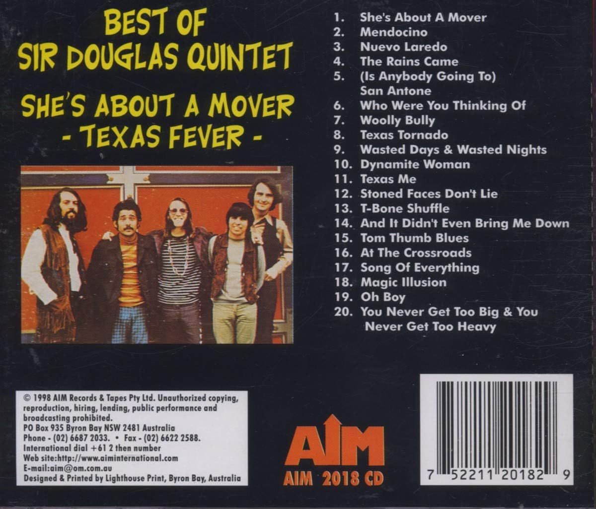 Texas Fever: Best Of Sir Douglas Quintet is the compilation album by The Sir Douglas Quintet, was released on March 20, 2006 by Aim Records, featuring "She's About A Mover", "Mendocino", "Dynamite Woman", "The Rains Came", and more!.