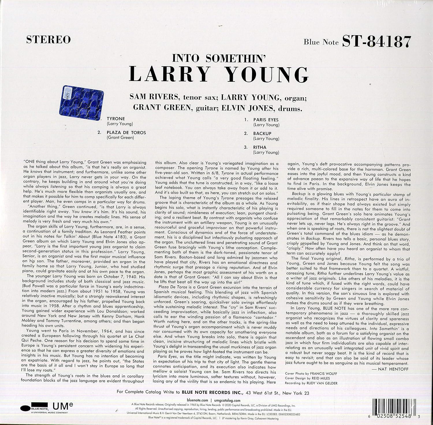 Into Somethin' is a debut studio album by Larry Young, originally released on March 1965 by Blue Note Records, remastered and reissued on June 19, 2020 by Blue Note Records, featuring Sam Rivers, Grant Green and Elvin Jones. Remastered from the original analog tapes in 180 Gram Vinyl.