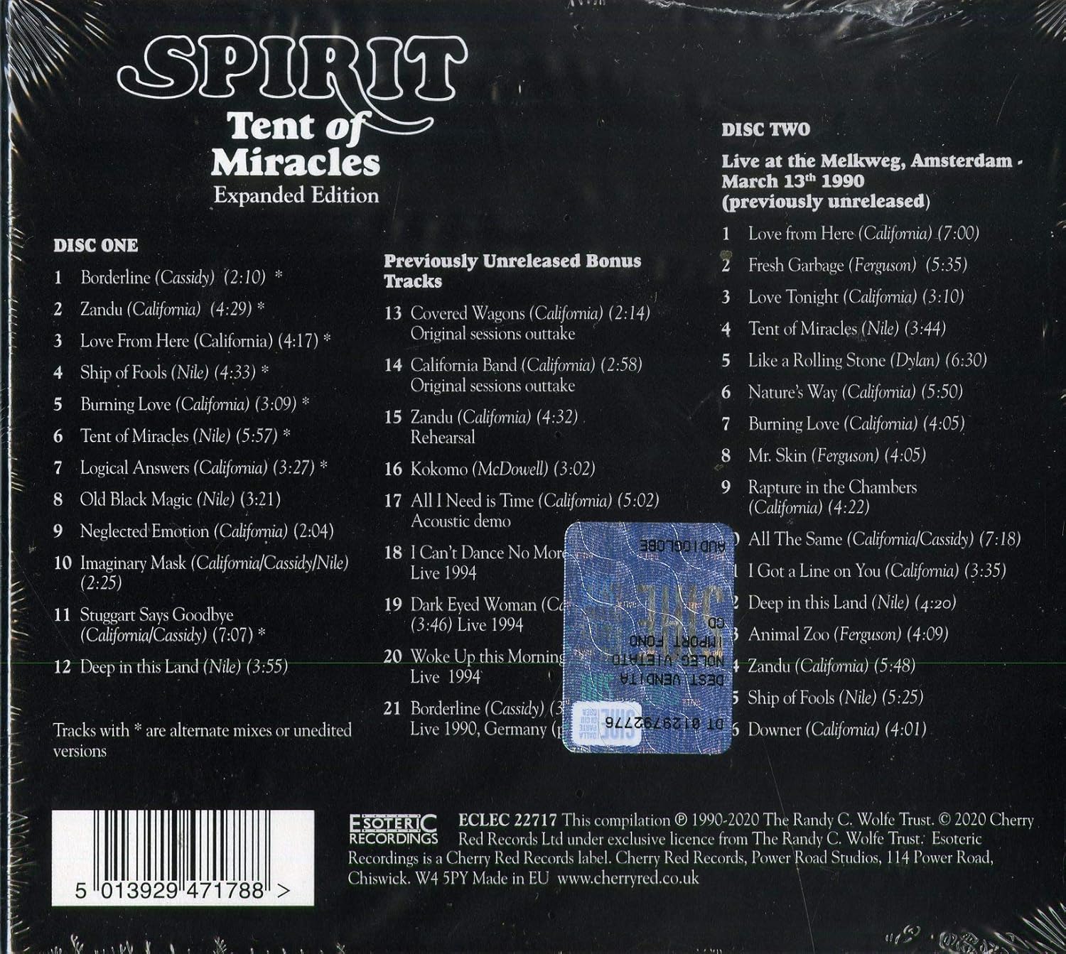 Tent O Miracle is the thirteenth studio album by Spirit, originally released in 1990 by Line Records, remastered and reissued on April 24, 2020 by Esoteric Recordings. Expanded Edition in 2 CD, with Bonus Tracks Previously Unreleased and Live at the Milkweg, Amsterdam, March 13, 1990.