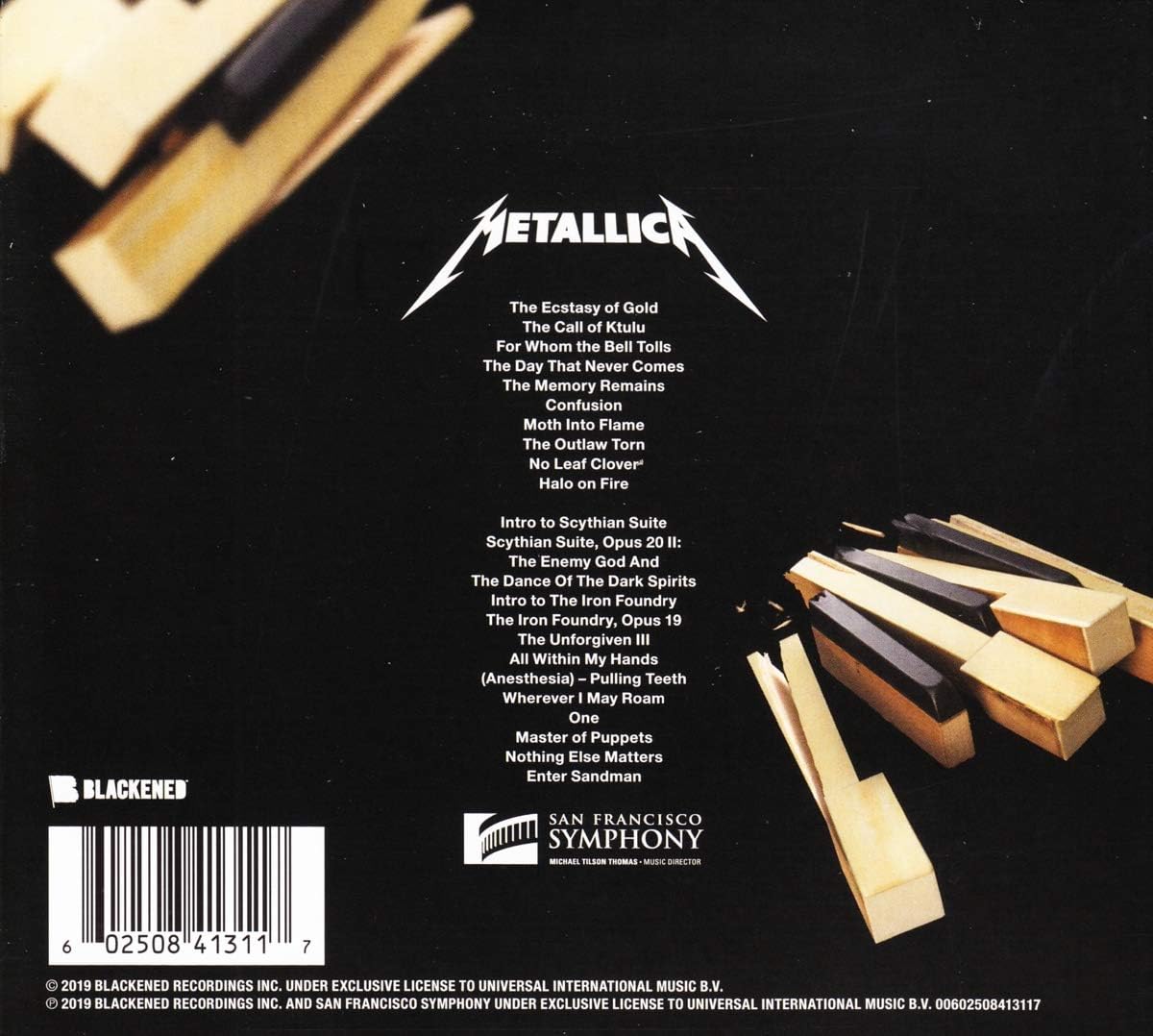 S&M 2 is a live album by Mettalica and the San Francisco Symphony, released on August 28, 2020 by Blackened Recordings. The album reached No. 1 on US Top Rock Albums Chart(Billboard)/US Top Album Sales Chart(Billboard)/US Hard Rock Albums Chart(Billboard)/US Classical Albums Chart (Billboard)/UK Rock & Metal Albums Chart/Scottish Albums Chart/Portuguese Albums Chart/German Albums Chart/Australian Albums Chart/Austrian Albums Chart/Belgian Albums Chart.