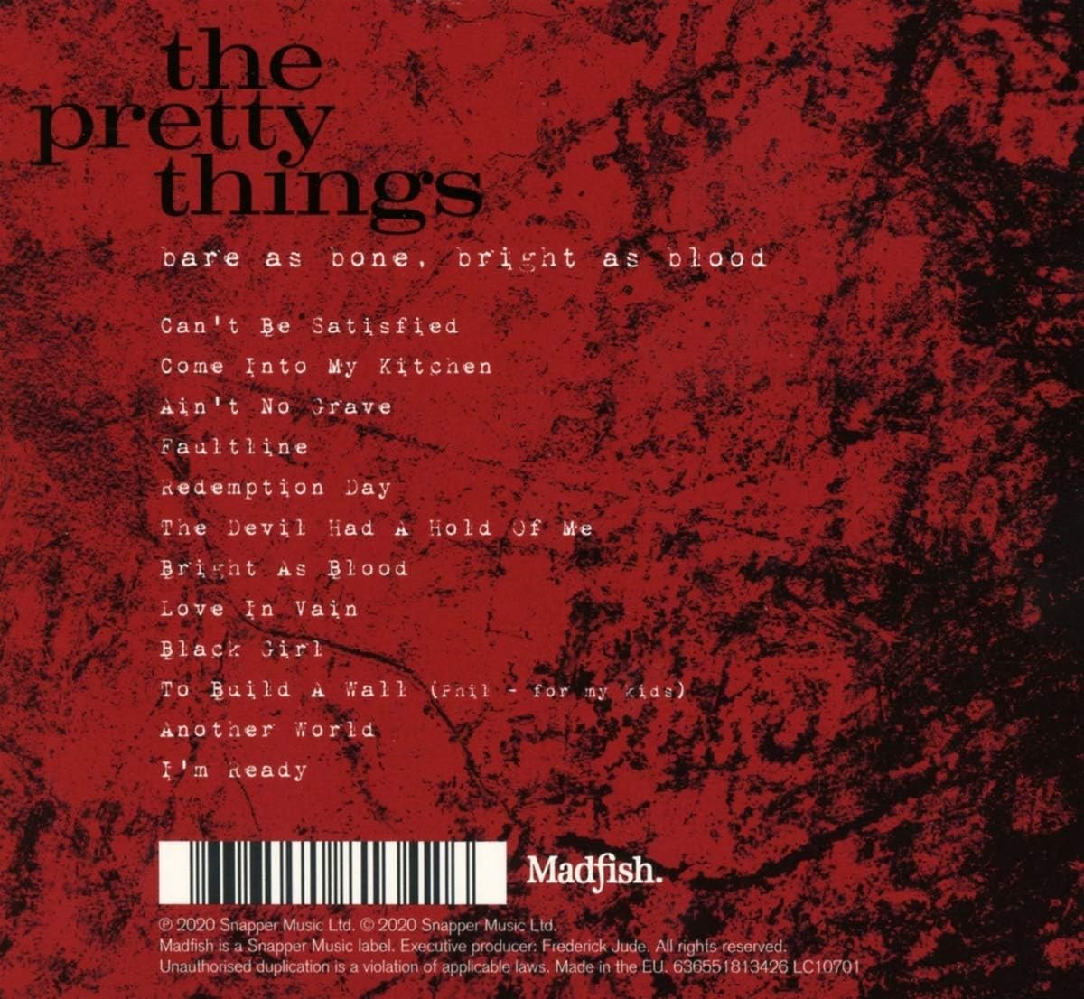 Bare As Bone, Bright As Blood is the thirteenth studio album by The Pretty Things, released on September 25, 2020 by Madfish, a few months after the death of lead singer Phil May.