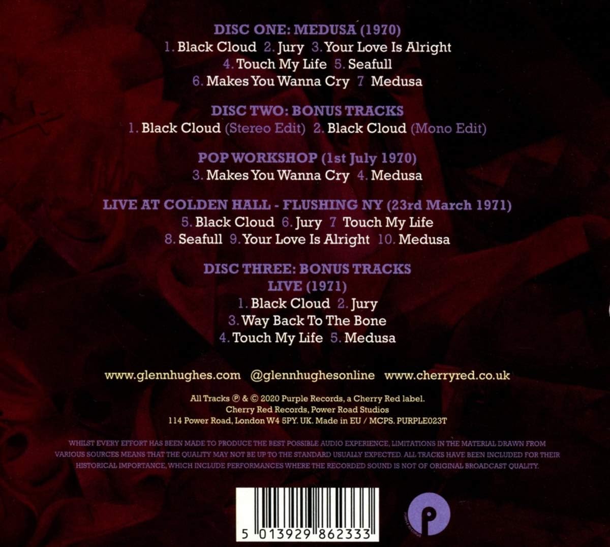 Medusa is the second studio album by Trapeze, originally released on November 1970, remastered and reissued on September 16, 2020 by Purple Records. Deluxe Edition 3 CD, Original Album, Bonus Tracks and Bonus Tracks Live. For Music Lovers and Music Collectors and For Fans of Deep Purple, Whitesnake and Judas Priest.