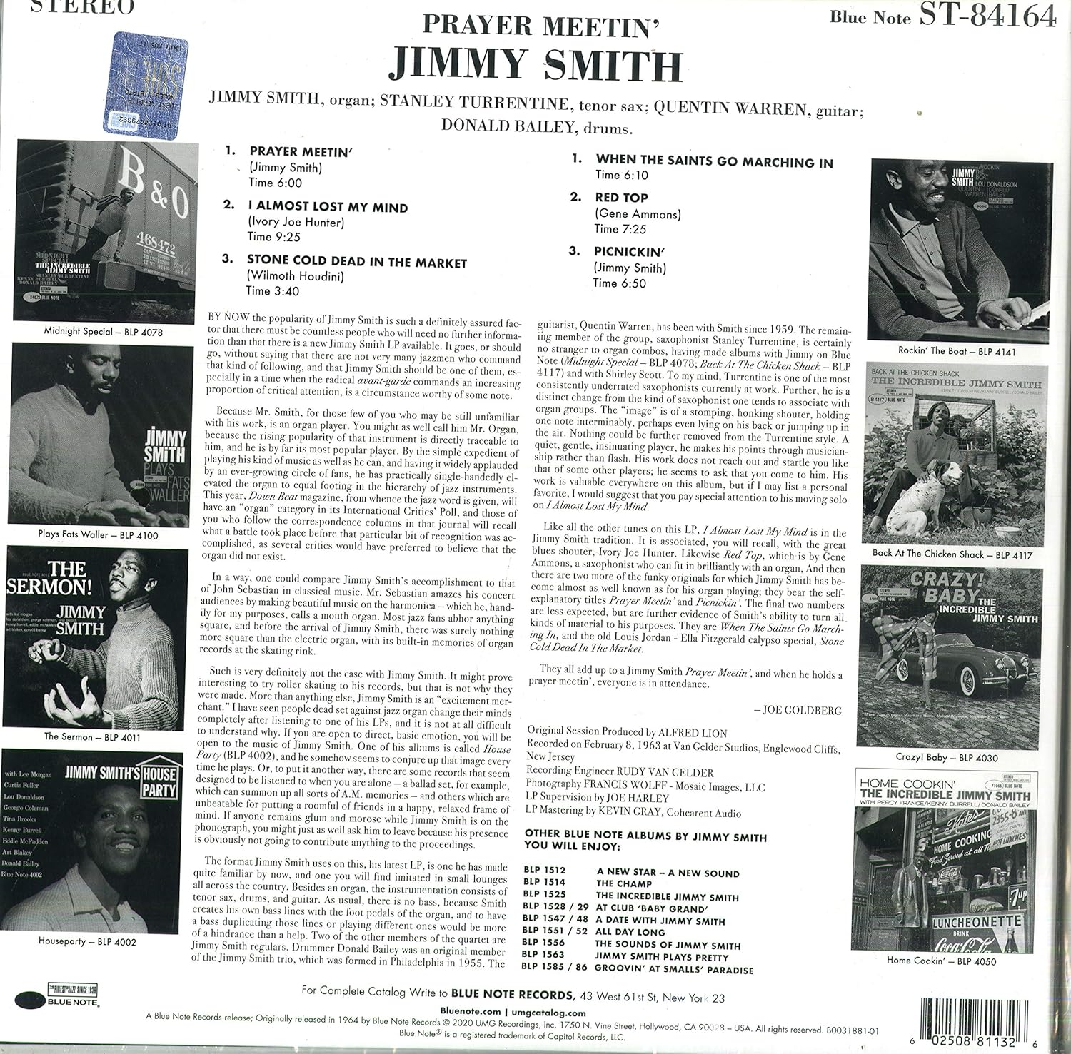 Prayer Meetin' is an album by Jimmy Smith with Stanley Turrentine, originally released in 1964, by Blue Note, remastered and reissued on July 31, 2020 by Blue Note, featuring Stanley Turrentine, Quentin Warren, and Donald Bailey.