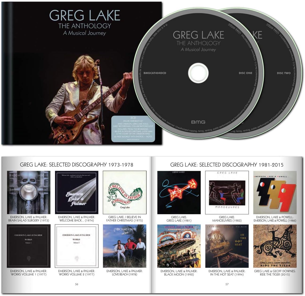 The Anthology: A Musical Journey is the compilation and tribute album by Greg Lake, released on October 23, 2020 by BMG, early recordings, King Crimson, Emerson, Lake & Palmer, Solo and collaborations. Deluxe Hardback Set including Book CD, 60 Page Booklet with many rare and unseen photos. Dedicated to the memory of Greg Lake.