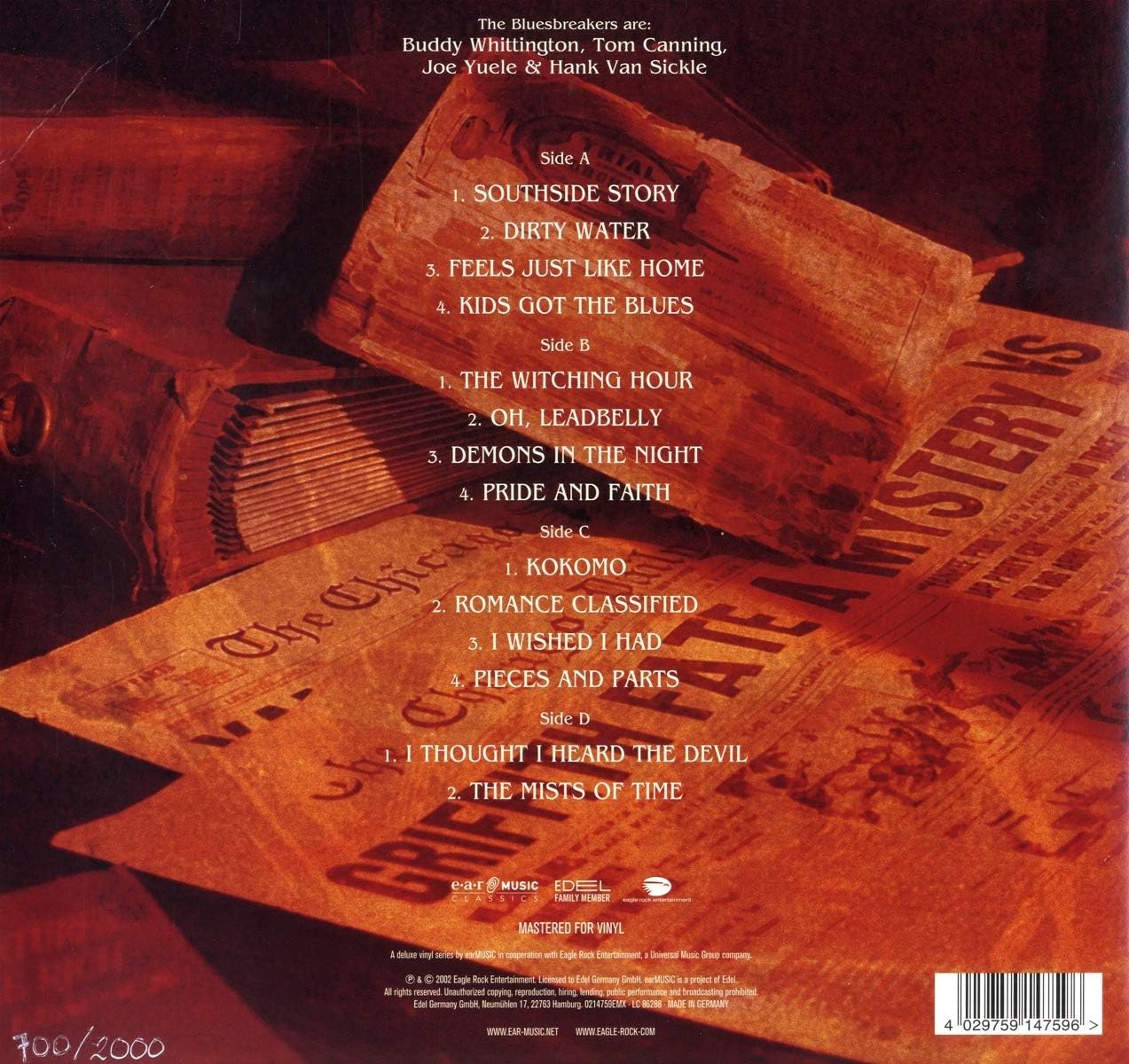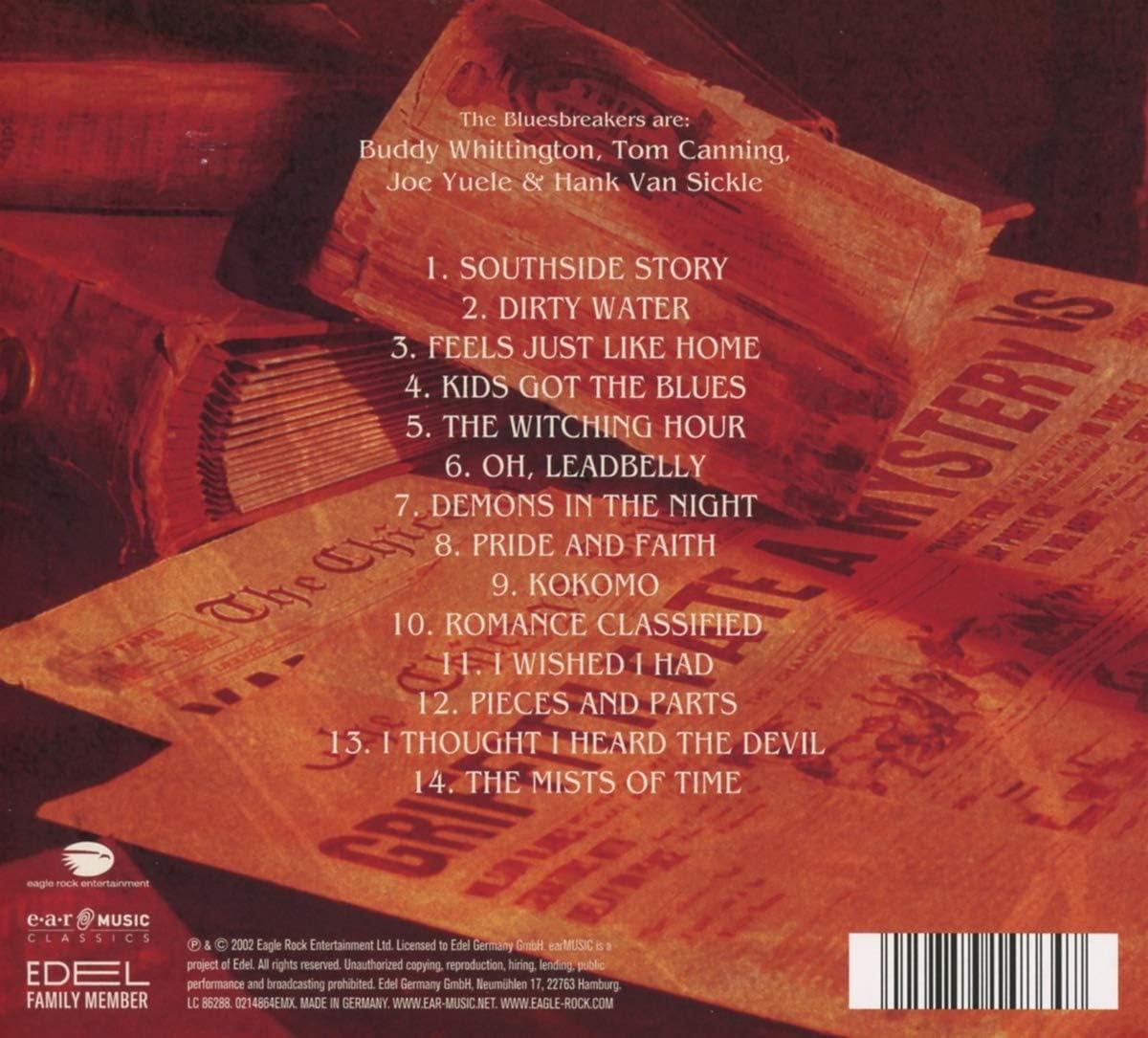 John Mayall: Vocals on All Tracks, Piano on Tracks: 1, 4, 5, 8, 11, 14, on Tracks: 1-3, 7, Organ, Lead Guitar on Tracks: 1, 2, 9, 12 String Guitar on Track 5, Digital Piano & Harmonica on Track 12, RhythmGuitar on Track 13, Synthesizer on Track 14