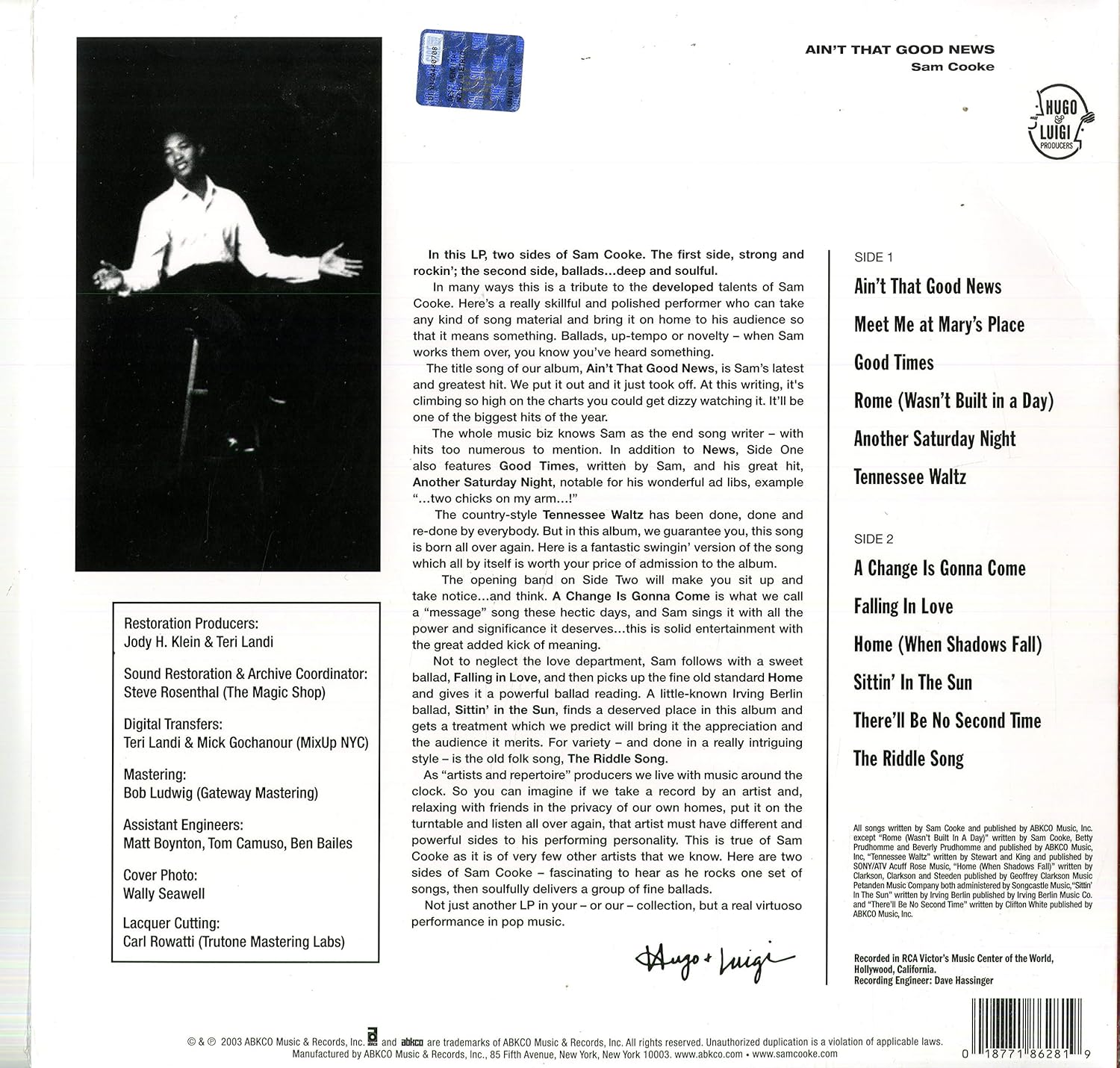 Ain't That Good News is the eleventh and final studio album by Sam Cooke, originally released on February 1964 by RCA, remastered and reissued on January 22, 2020 by RCA.