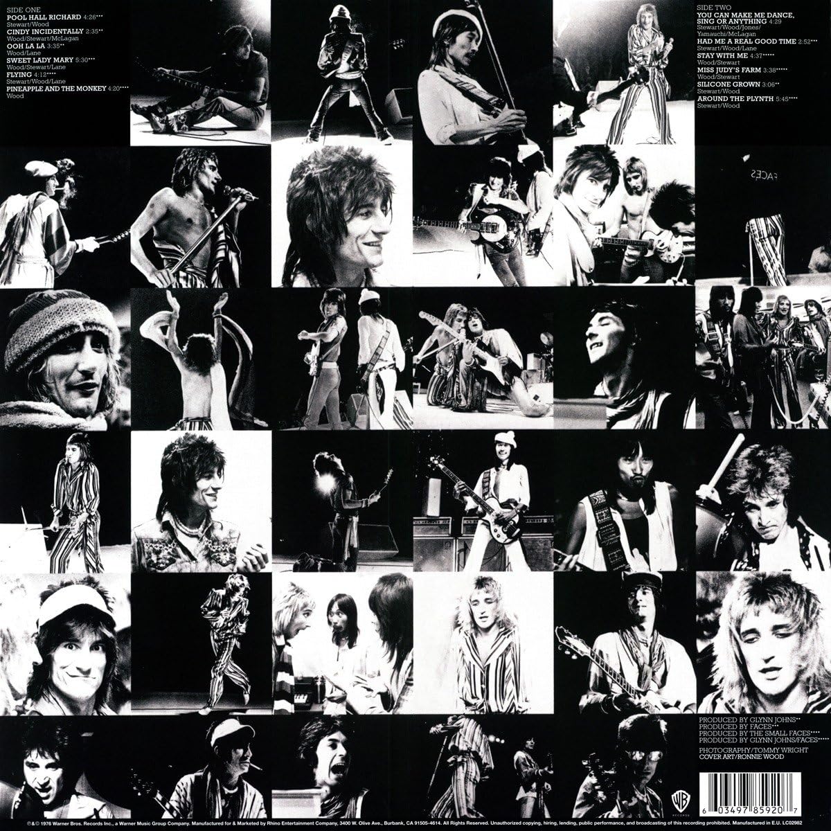 Faces were an English Rock Band from London, formed in 1969 by members of Small Faces after lead singer/guitarist Steve Marriott left that group to form Humble Pie. The remaining Small Faces-Ian McLagan (Keyboards), Ronnie Lane (Bass, Vocals), and Kenney Jones (Drums) were joined by Ronnie Wood (Guitar), and Rod Stewart (Lead Vocals), both from The Jeff Beck Group, and the new line-up was renamed Faces.