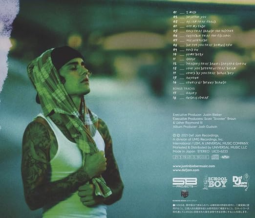 Justice is the sixth studio album by Justin Bieber, released on March 19, 2021 by Def Jam Recordings, featuring Khalid, Chance The Rapper, The Kid Laroi, Dominic Fike, Daniel Caesar, Giveon, Beam, Burna Boy, Benny Blanco and many more!. The album reached No.1 on US Billboard 200 Chart/UK Albums Chart/Swedish Albums Chart/NorwegianAlbums Chart/New Zealand Albums Chart/Irish Albums Chart/Canadian Albums Chart/Australian Albums Charts/Austrian Albums Chart/Belgian Albums Chart/Czech Albums Chart/Danish Albums Chart/Dutch Albums Chart/Finnish Albums Chart/Lithuanian Albums Chart.