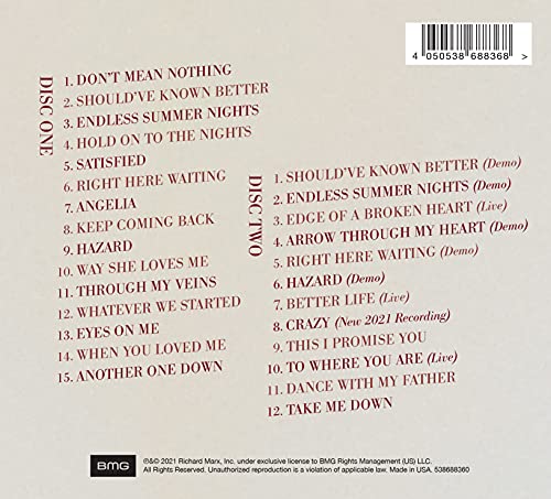 Stories To Tell: Greatest Hits And More is the soundtrack to the best-selling book by Richard Marx, released on July 2, 2021 by BMG, includes the hits, unreleased Demos, Live tracks and brand new recordings.