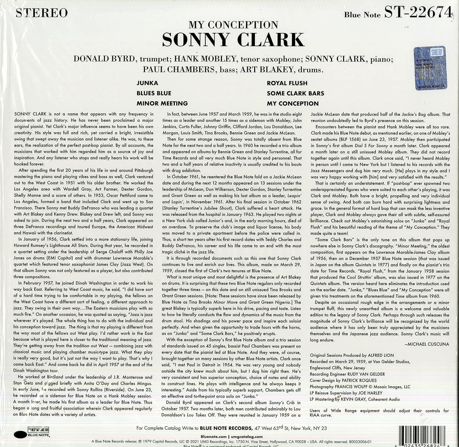 My Conception is an album by Sonny Clark, originally released in 1979, remastered and reissued on August 6, 2021 by Blue Note Records, featuring Donald Byrd, Hank Mobley, Paul Chambers and Art Blakley.
