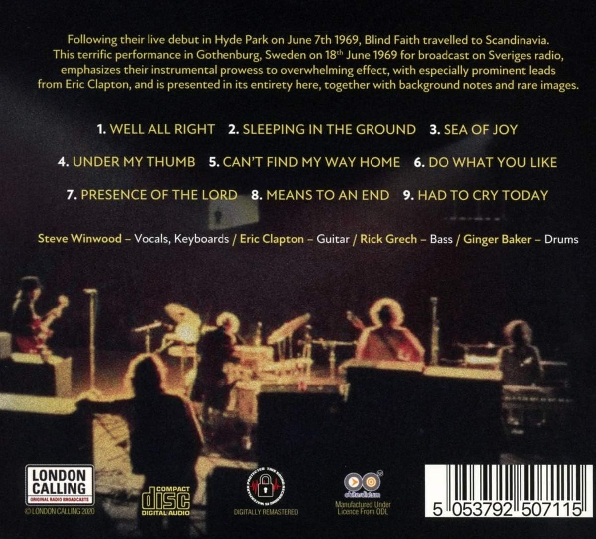 Gothenburg '69 is a live album by Blind Faith, released in 2021 by AVA, recorded live in Gothenburg, Sweden, June 18 1969 Sveriges Radio. Deluxe Edition Hard Back Book, 40 pages of archival imagery. Hand Numbered Editions.