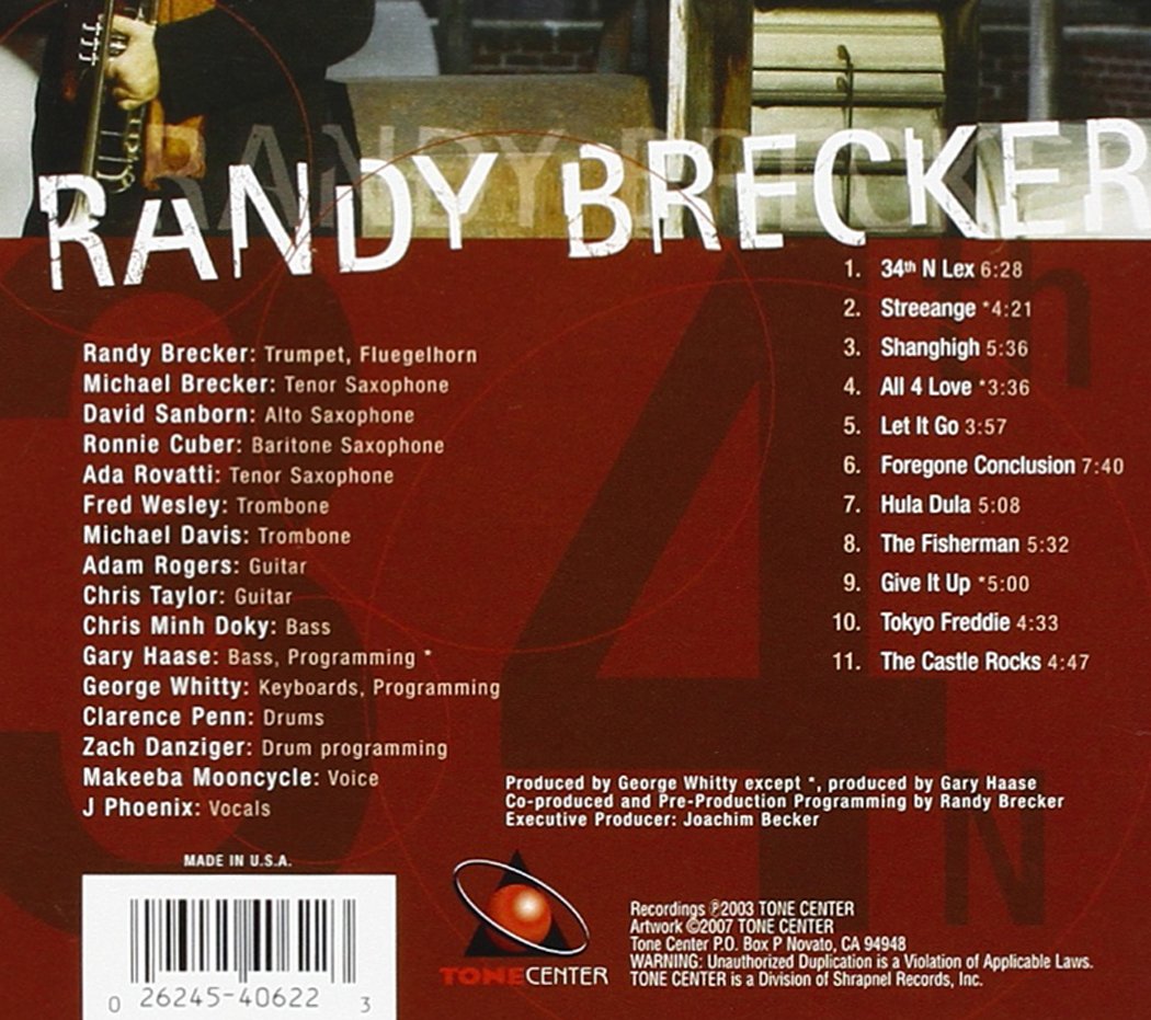 34th N Lex is an album by Randy Brecker, originally released on April 2, 2003 by ESC Records, remastered and reissued on October 1, 2021 by ESC Records, featuring Michael Brecker, David Sanborn, and many more!. The album won the Grammy Award for Best Contemporary Jazz Album.