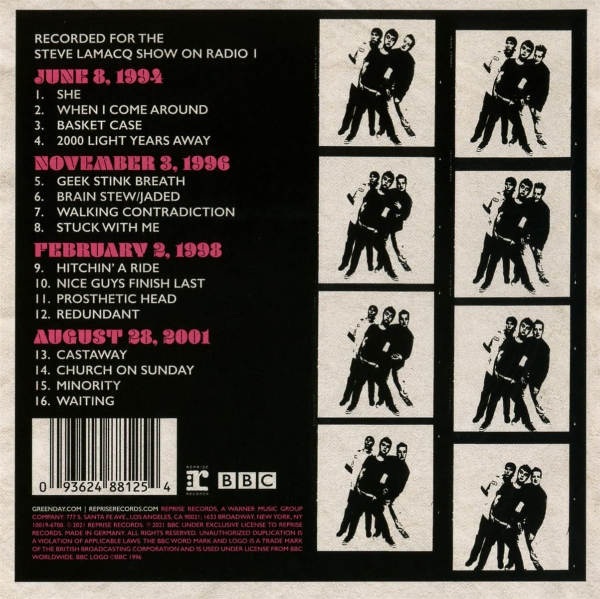 BBC Sessions is the fourth live album by Green Day, released on December 10, 2021 by Reprise Records. It consists of the recordings for the BBC from 1994 to 2001 held at the Maida Vale Studios in London four times and record live sessions for Radio 1's "Evening Show" and its popular DJ Steve Lamcq.