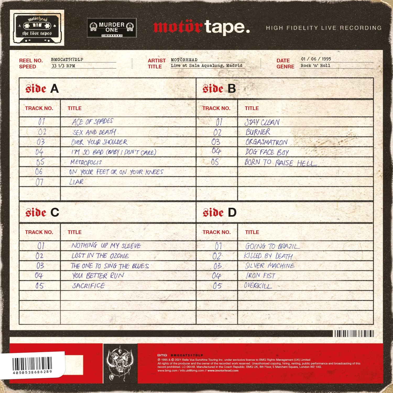 The Lost Tapes: Vol. 1 is a live album by Motorhead, released on November 26, 2021 by BMG. Limited Edition previously unreleased live album on Double Red Vinyl, recorded live from the Sacrifice Album Tour at Sala Aqualung in Madrid, Spain on June 1, 1995.
