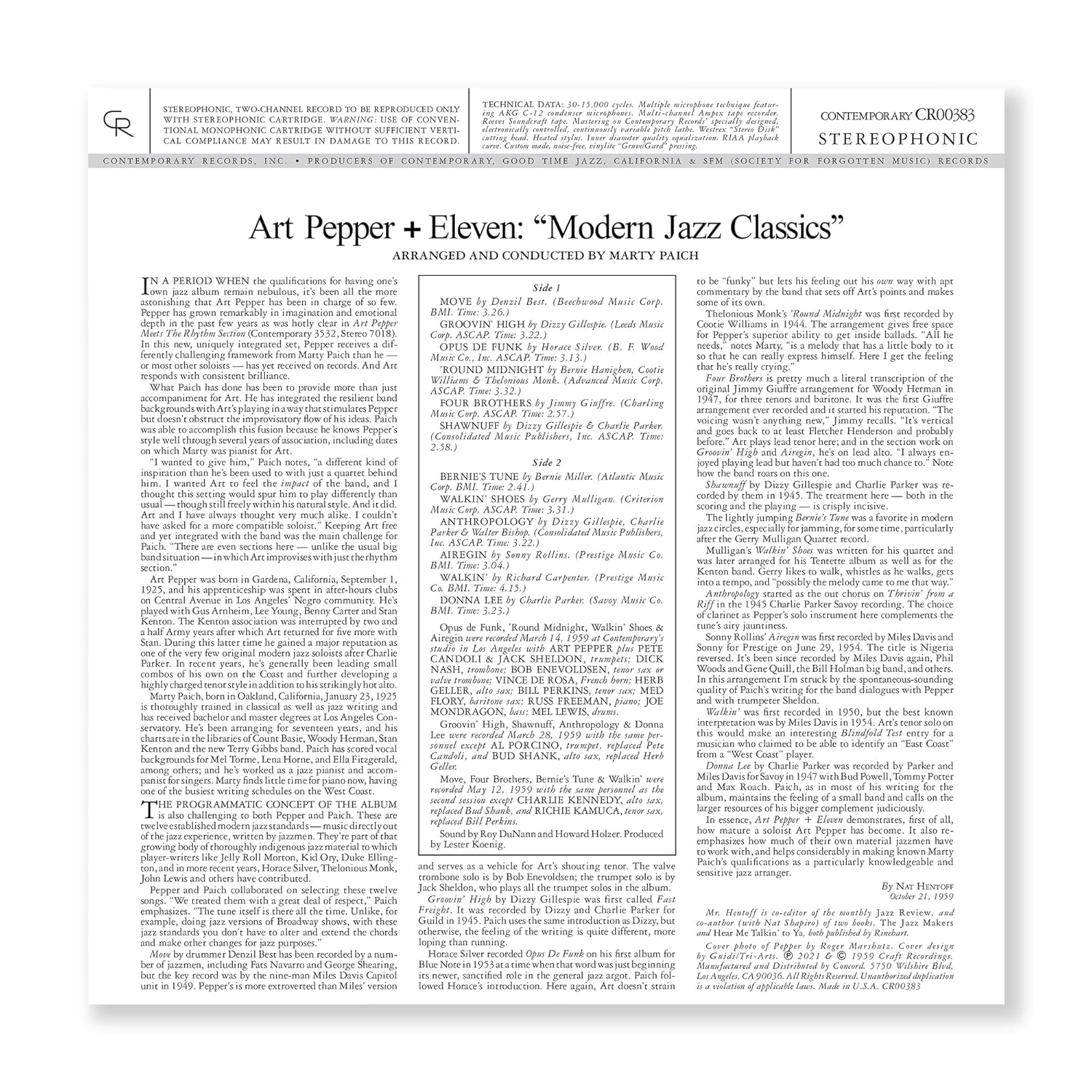+Eleven: Modern Jazz Classic is a 1960 album by Art Pepper, originally released on January 1960 by Contemporary/OJC, remastered and reissued on May 13, 2022 by Craft Recordings. 180 Gram Vinyl.