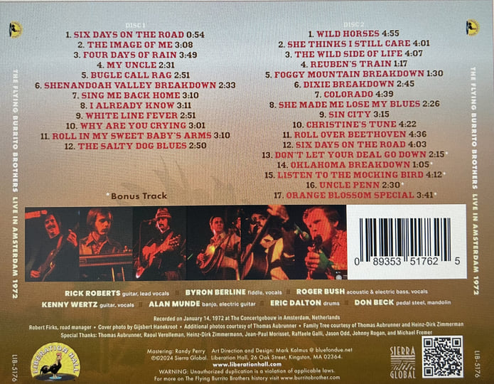 Live In Amsterdam 1972 is a live album by The Flying Burrito Brothers, recorded on January 14, 1972, at The Concertgebouw in Amsterdam, Netherlands.
