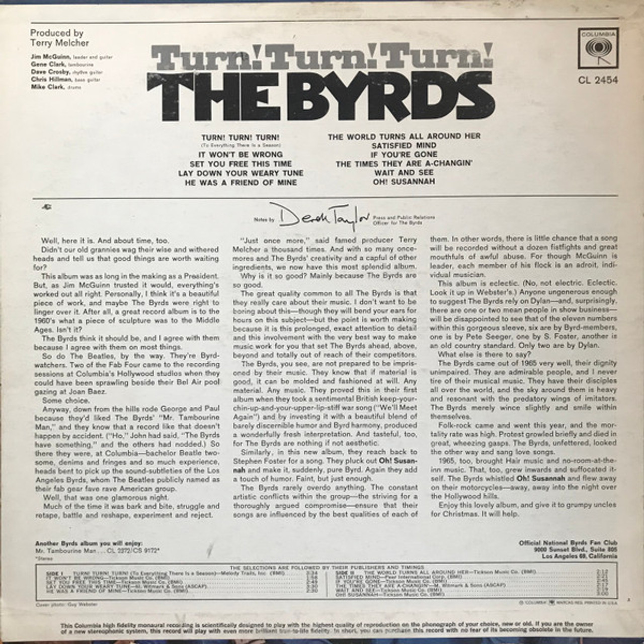 Turn! Turn! Turn! is the second studio album by The Byrds, was released on December 6, 1965 by Columbia Records. For Fans of The Byrds and Music Collectors.