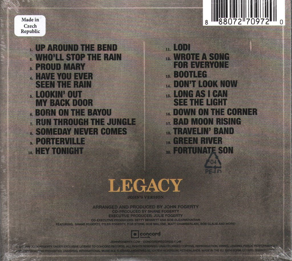 Legacy: The Creedence Clearwater Revival Years is the celebration album by John Fogerty, released on August 22, 2025 by Concord Records, consists of re-recordings of music by John Fogerty's former band Creedence Clearwater Revival. In 1 CD and 2 LP Black Vinyl. For Fans of Creedence Clearwater Revival, and Music Collectors.