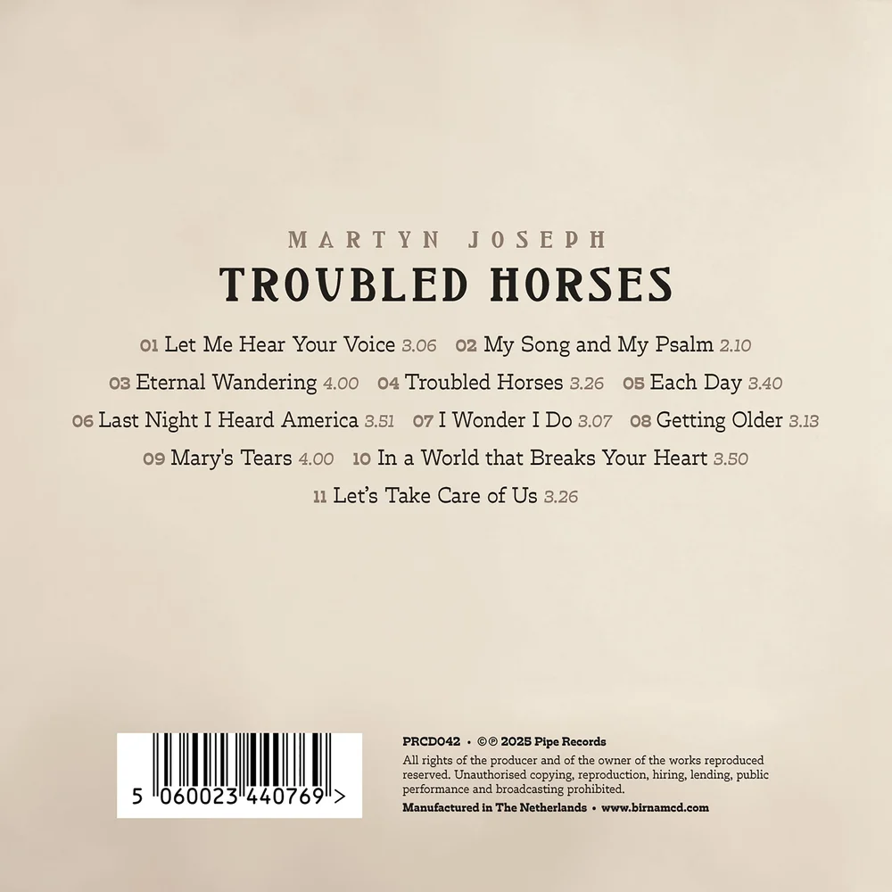 Troubled Horses is an album by Martyn Joseph, released on November 7, 2025 by Pipe Records. Quite simply one of the finest albums.