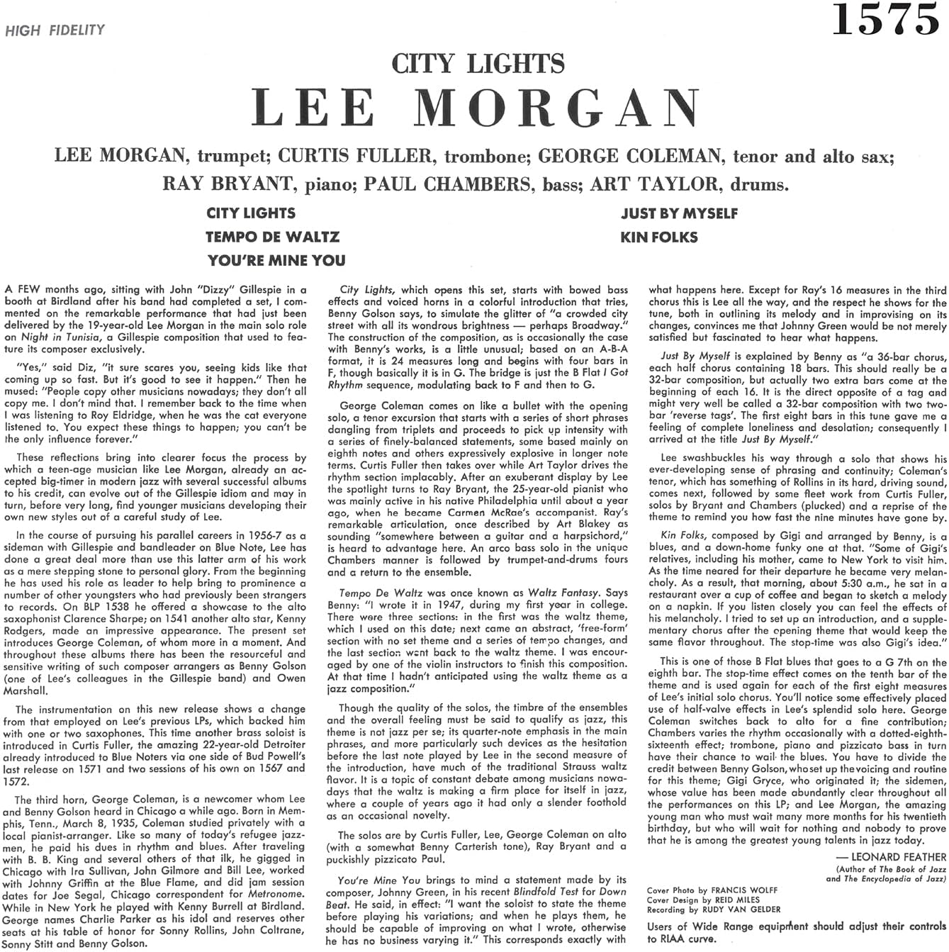 City Lights is an album by Lee Morgan, originally released on June 1968 by Blue Note, remastered and reissued on February 6, 2026 by Blue Note. Pressed on 180 Gram Audiophile Vinyl.
