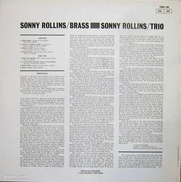 Brass/Trio is an album by Sonny Rollins, originally released n 1962 By Verve Records, remastered and reissued on February 13, 2026 by Verve. Pressed on 180 Gram Vinyl.