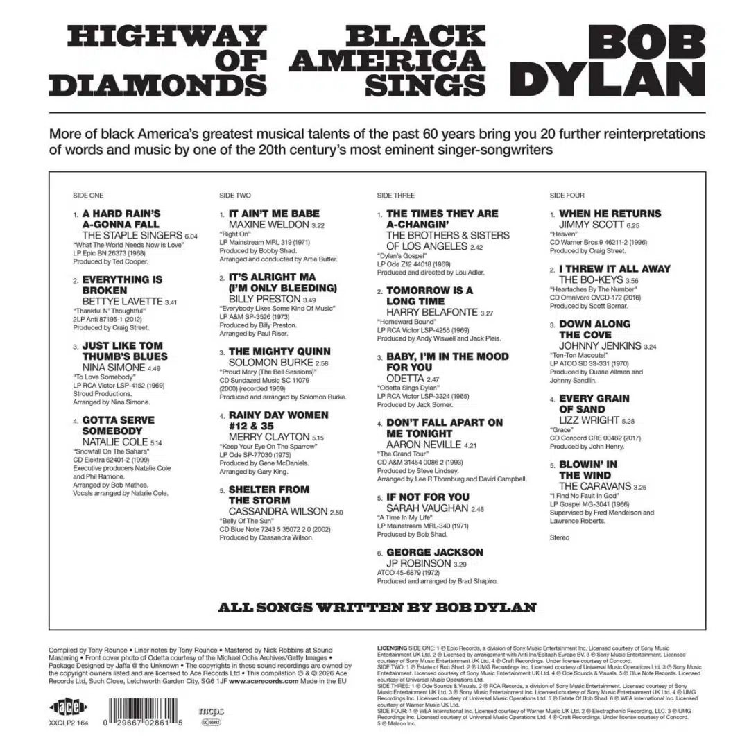Highway Of Diamonds: Black America Sings Bob Dylan is the tribute album by Various Artists, released on January 30, 2026 by ACE Records, featuring Nina Simone, Sarah Vaughan, Billy Preston, Solomon Burke, Cassandra Wilson, Harry Belafonte, Aaron Neville, Jimmy Scott, Natalie Cole, The Staple Singers, and many more!.